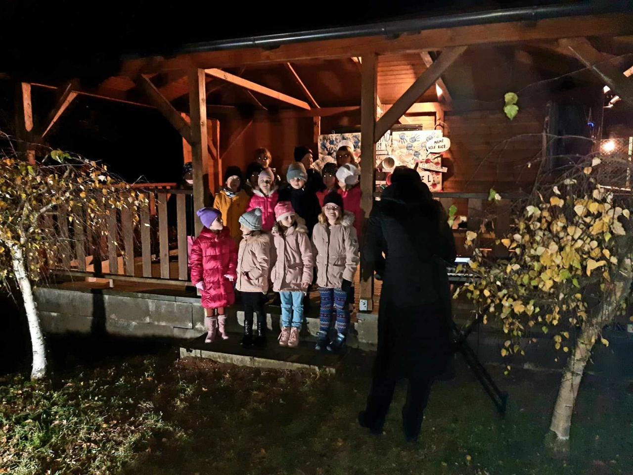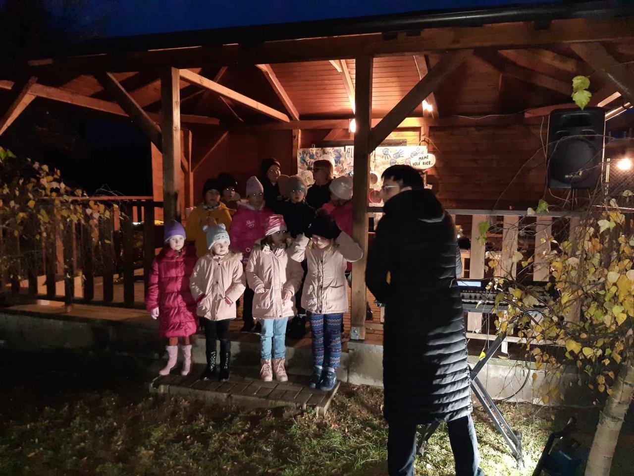 Následovali malí zpěváčci, kteří zazpívali státní hymnu a píseň Modlitba pro Martu. Pak už se mohlo vyrazit na lampiónový průvod obcí za doprovodu místních hasičů, kteří se postarali o bezpečnost. Po návratu na krásně osvětlenou školní zahradu se opékaly buřty a pro zahřátí se podával punč.