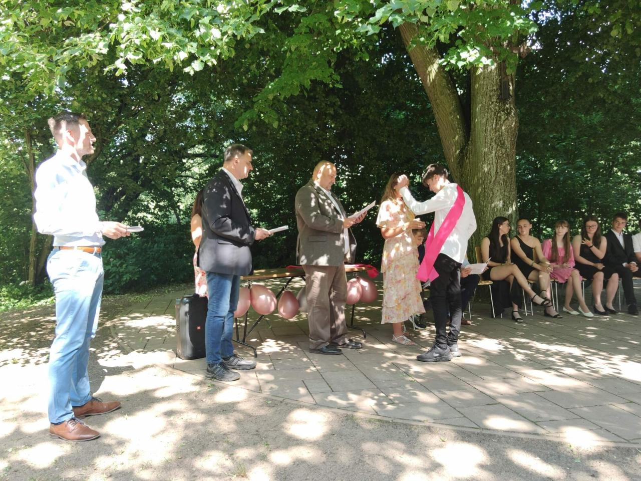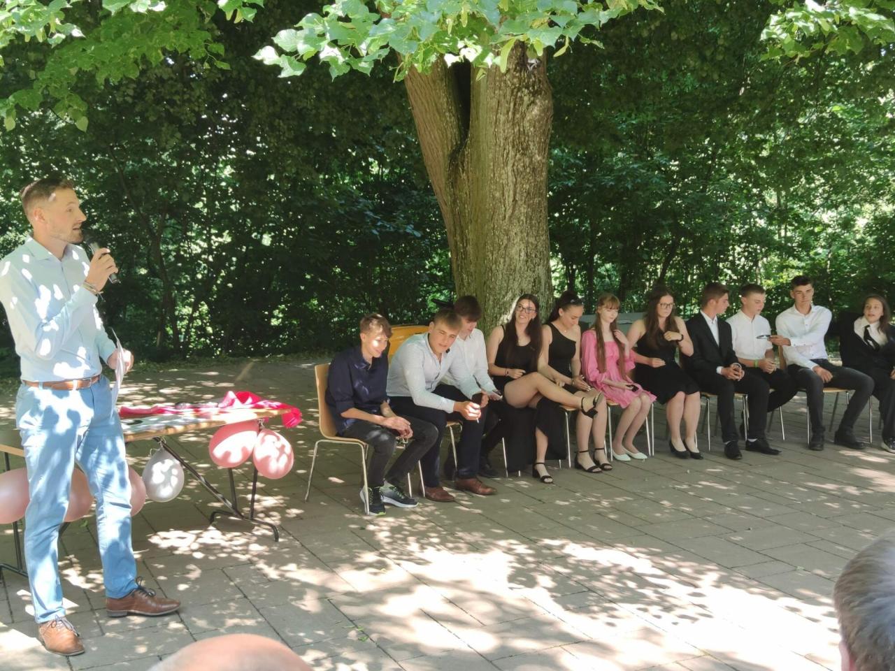 Slavnostní vyřazení se konalo 29.06.2023 odpoledne ve Tvrzi ve Štěměchách. Za školu se s žáky rozloučil třídní učitel Mgr. Josef Herbrych a pan ředitel Ing. Jan Tesař. Paní starostka ze Štěměch pronesla krátkou řeč, a pak už mohlo nastat slavnostní předání vysvědčení, které žákům předal pan starosta Ing. Zdeněk Skála z Předína. Celkem bylo vyřazeno 14 žáků 9. třídy. Děkujeme za pozvání.
