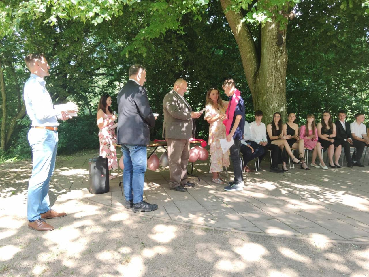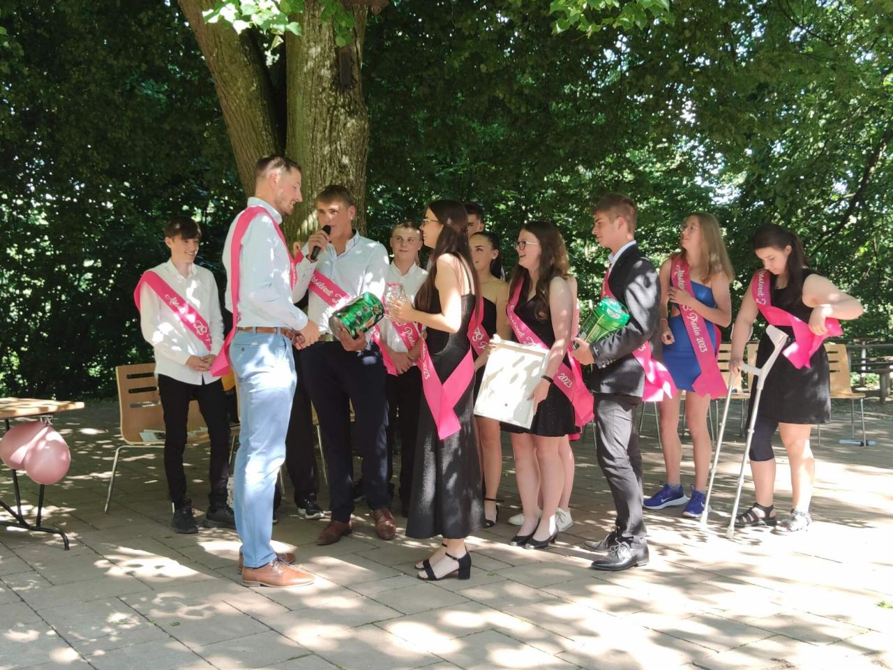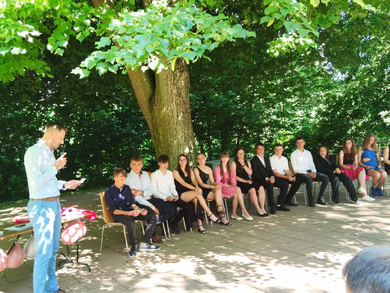 Slavnostní vyřazení se konalo 29.06.2023 odpoledne ve Tvrzi ve Štěměchách. Za školu se s žáky rozloučil třídní učitel Mgr. Josef Herbrych a pan ředitel Ing. Jan Tesař. Paní starostka ze Štěměch pronesla krátkou řeč, a pak už mohlo nastat slavnostní předání vysvědčení, které žákům předal pan starosta Ing. Zdeněk Skála z Předína. Celkem bylo vyřazeno 14 žáků 9. třídy. Děkujeme za pozvání.