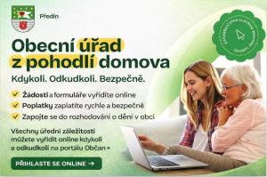 Naše obec nově nabízí možnost vyřizovat vybrané úřední záležitosti online, a to kdykoli a odkudkoli – bezpečně a pohodlně z domova. Stačí navštívit webové stránky obce a prostřednictvím portálu Občan+ se přihlásit pomocí ověřené identity.