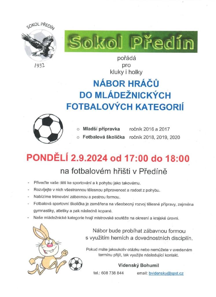 Sokol Předín Dnes 2.9.2024 17-18 hodin na fotbalovém hřišti