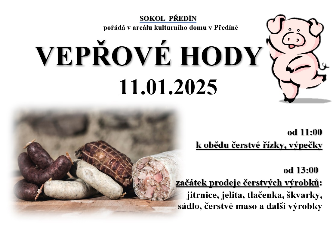 začátek prodeje čerstvých výrobků: jitrnice, jelita, tlačenka, škvarky, sádlo, čerstvé maso a další výrobky