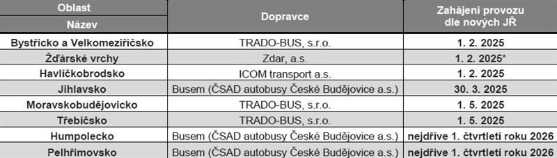 Nové jízdní řády se budou zavádět v několika fázích. Od 1. února 2025 se bude změna týkat oblastí Bystřicko a Velkomeziříčsko, Žďárské vrchy, Polensko a Havlíčkobrodsko. Na Jihlavsku dojde ke změně k 30. březnu 2025 a na Moravskobudějovicku a Třebíčsku k 1. květnu 2025.